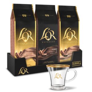 Zestaw kawa ziarnista L’OR Mix 1x ESPRESSO FORZA, 2x CREMA ABSOLU PROFOND, 3×500 g + 𝐬𝐳𝐤𝐥𝐚𝐧𝐤𝐚 𝐠𝐫𝐚𝐭𝐢𝐬, 𝐃𝐀𝐑𝐌𝐎𝐖𝐀 𝐃𝐎𝐒𝐓𝐀𝐖𝐀🚚