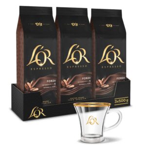 Zestaw kawa ziarnista L’OR Mix 2x ESPRESSO FORZA, 1x CREMA ABSOLU PROFOND, 3×500 g + 𝐬𝐳𝐤𝐥𝐚𝐧𝐤𝐚 𝐠𝐫𝐚𝐭𝐢𝐬, 𝐃𝐀𝐑𝐌𝐎𝐖𝐀 𝐃𝐎𝐒𝐓𝐀𝐖𝐀🚚